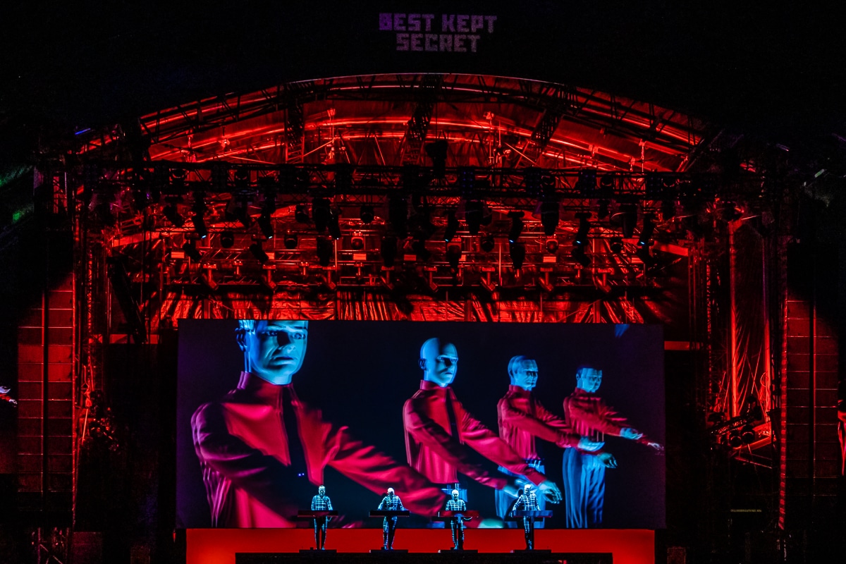 Kraftwerk was een bijzondere act op de zaterdagavond. Een 3D show. Nu heb ik met 3D in de bioscoop eerlijk gezegd helemaal niets. Het heeft voor mij geen toegevoegde waarde en zo’n brilletje zit gewoon rete-irritant. Ook nu zat dat brilletje rete iritant. Waar je in de bioscoop nog enigzins ‘in’ de film komt te zitten, kwam het 3D in dit concert niet helemaal over bij mij. Omdat ik alleen de laatste drie nummers mocht fotograferen en ik van begin af aan klaar moest staan, heb ik de hele show kunnen bekijken…. zonder brilletje. En het klinkt nog steeds enorm tof! Enige nadeel van een 3D show fotograferen is dat de achtergrond nogal ‘wazig’ wordt. Maar goed… ‘elk nadeel hep ze voordeel’ zei ooit iemand.