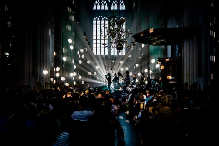 Maar… allereerst komt daar de eerste vraag: welke foto ga ik af laten drukken??? Ik wilde een concertfoto laten afdrukken, dat stond al vast. Maar dan nog is de vraag welke en waarom? Na enig denkwerk besloot ik een foto uit te zoeken met veel zwart erin. Dit omdat in mijn ogen zwart bij een afdruk ook echt zwart moet zijn. Toen ik dat eenmaal besloten had was voor mij helder welke foto ik zou gaan gebruiken: de foto die ik van Navarone maakte in de Stevenskerk in Nijmegen met het licht rondom zanger Merijn van Haren en de lampjes door de kerk over het publiek heen.
