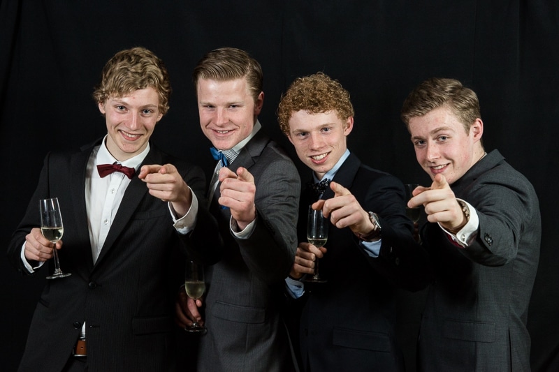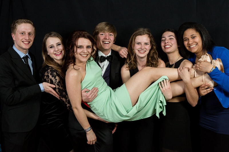 Wat volgde was een hele toffe avond en nacht waarbij de studenten er absoluut schik in hadden. Er werden niet alleen mooie klassieke gala-portretten gemaakt, maar absoluut ook portretten waar ze plezier hadden met elkaar.