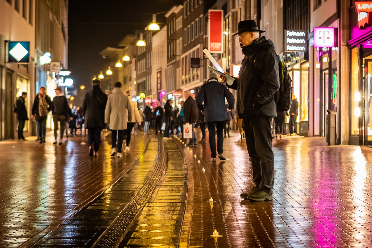 De donderdagavond 21 februari begon met licht en muziek. Door de hele binnenstad liggen metalen plaatjes op de grond met daarop de namen van de ruim 800 slachtoffers van dit bombardement. Op deze plaatjes werden waxinelichtjes geplaatst zodat de brandgrens door de stad ook zichtbaar werd. Op diverse plekken stonden koren en andere muziekgezelschappen. Wat volgde was een indrukwekkende avond met een hoeveelheid bezoekers die enorm was.