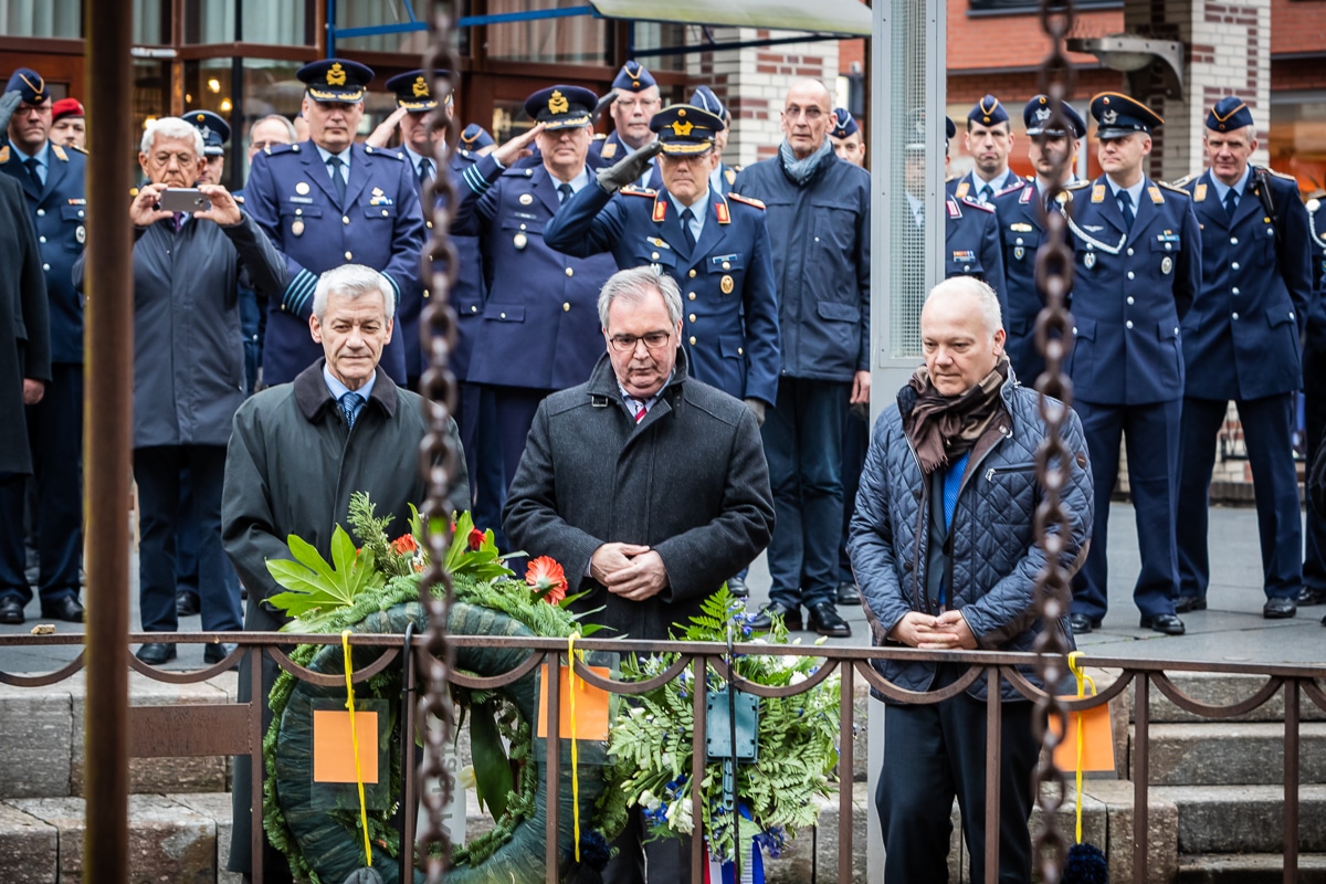 Enige tijd na de officiele kransleggingen, en het grote publiek al weg was, kwam een delegatie van Duitse veteranen en de burgemeesters van Kleve en Kranenburg (Dld.) kransen leggen.