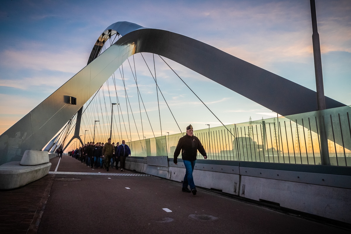 Zaterdagavond waren het de Gele Rijders die de eerste Sunset March liepen. Een mars over de stadsbrug De Oversteek, Exact op de plek waar gealieerde militairen aan het einde van de Tweede Wereldoorlog probeerden in kleine bootjes de rivier de Waal over te steken.