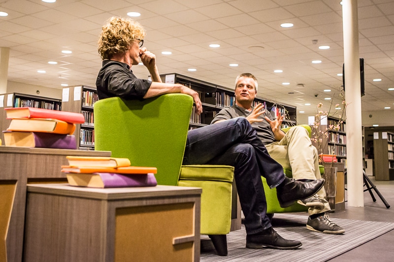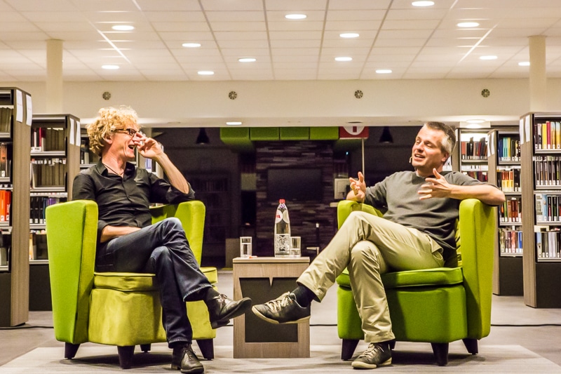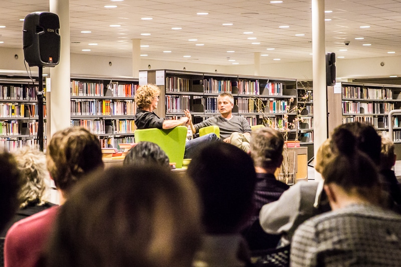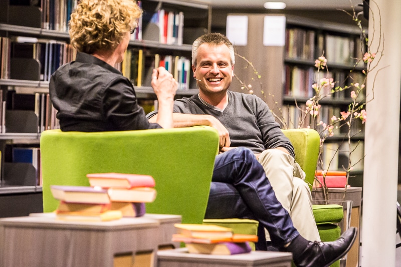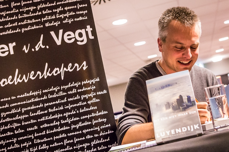 Afgelopen vrijdag was schrijver Joris Luyendijk te gast in bibliotheek Nijmegen om daar over zijn nieuwe boek ‘Dit Kan Niet Waar Zijn’ te praten. Gastheer was Marcel Rözer. Voor een bomvolle zaal, de telefoon bij Bibliotheek Gelderland Zuid stond werkelijk roodgloeiend of er toch nog kaarten te koop waren, vertelde Joris over de manier waarop hij in Londen gewerkt had en hoe zijn boek tot stand gekomen was. Op zijn vraag of er nog bankiers in de zaal zaten, durfde een iemand toch zijn vinger op te steken.