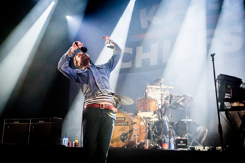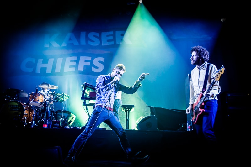 De Kaiser Chiefs maakten er dan ook een feestje van. Zanger Ricky Wilson gaat normaliter graag op de barriers staan om op die manier contact te zoeken met de fans. Vanavond staan er echter geen barriers. Geen probleem voor Ricky. Hij springt het podium af en loopt dwars door het publiek naar een van de bars aan de zijkant en gaat bovenop de bar staan en daar zijn nummer verder te zingen en heeft hier zijn contactmoment met het enthousiaste publiek.