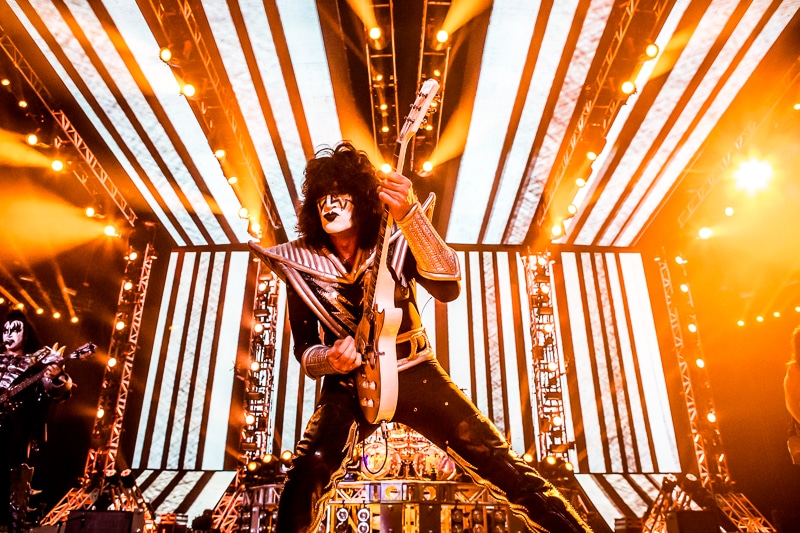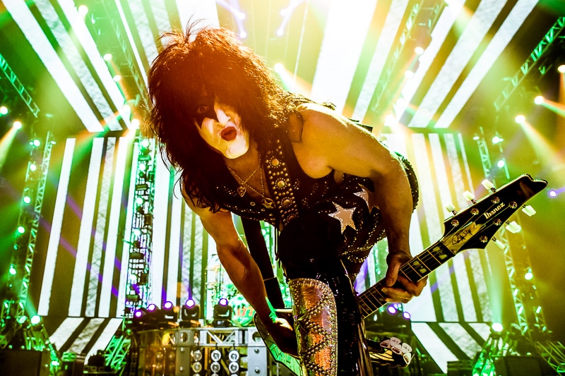 De glamrock band Kiss stond gisteravond in de Ziggo Dome in Amsterdam ter ere van hun 40 jarig bestaan. En het werd een grote greatest hits show met veel spektakel, vuurwerk en vliegwerk. Kortom: alles werd uit de kast gehaald om het publiek een onvergetelijke avond te geven. Paul Stanley pakte halverwege de show nog even een vlucht van het podium naar een verhoging achter in de zaal om daar een aantal nummers te zingen. Werkelijk niets was te dol.