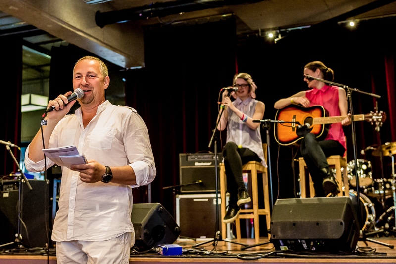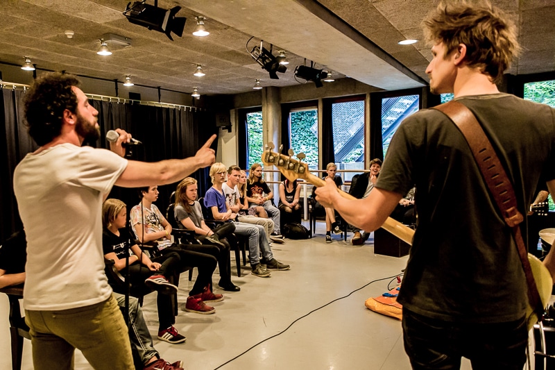 Vorige week was in de Lindenberg in Nijmegen de voorronde van Kunstbende Gelderland. Verschillende muzikanten, dansgroepen, filmmakers, taalvirtuozen en kunstenaars toonden aan een jury en publiek hun kunnen en kunsten. De muzikanten kregen bovendien nog een workshop songwriting van de band Navarone.