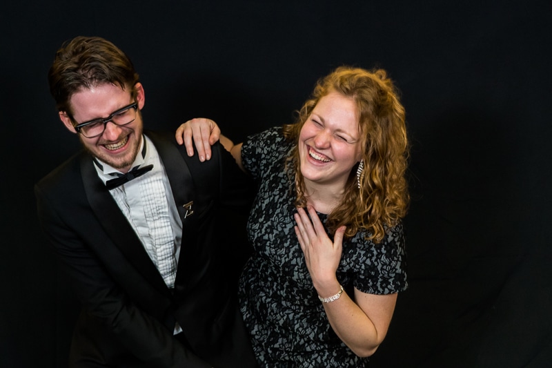 Studentenvereniging V.C.M.W. Sigma in Nijmegen bestond 40 jaar. Een reden om een groot lustrumfeest te organiseren in Stadsbrouwerij De Hemel. Een ongelofelijk mooie lokatie voor een geweldig studentengala en feestavond. Op 20 april kwam iedereen en alles samen in de brouwerij. Bovenin zette ik een mooie kleine studiosetting op. Al snel had ik door dat dit een hele toffe groep studenten was die voornamelijk plezier hadden met elkaar. Het doel was dan ook om niet alleen de serieuze galafoto’s te maken, maar zeer zeker ook het plezier terug laten komen in deze foto’s zodat ze in een later stadium nog met enorm veel plezier op deze bijzondere avond terug konden kijken. Iets wat absoluut geslaagd is!